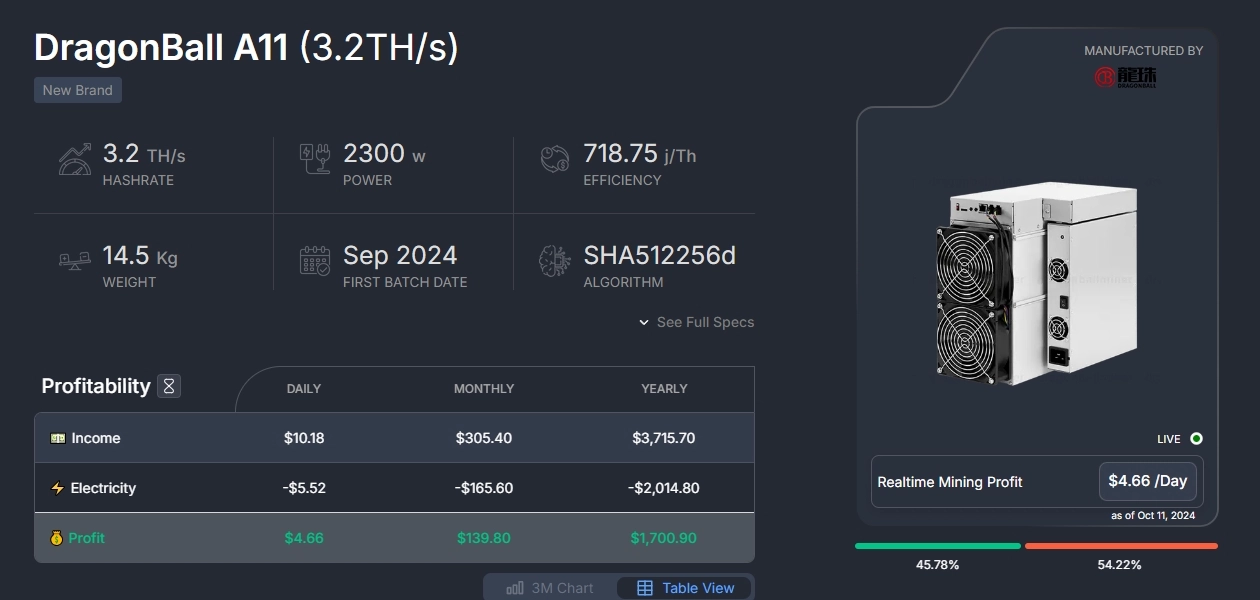 With these specs, the DragonBall Miner A11 is capable of delivering strong mining performance, particularly for miners looking to maximize returns without overspending on hardware.