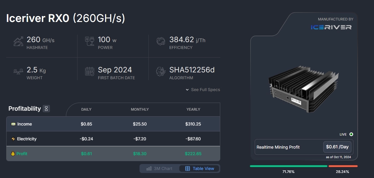 • Budget-conscious mining setups: For those looking to keep their costs as low as possible while still generating steady returns, the RX0 offers a highly efficient mining solution.
