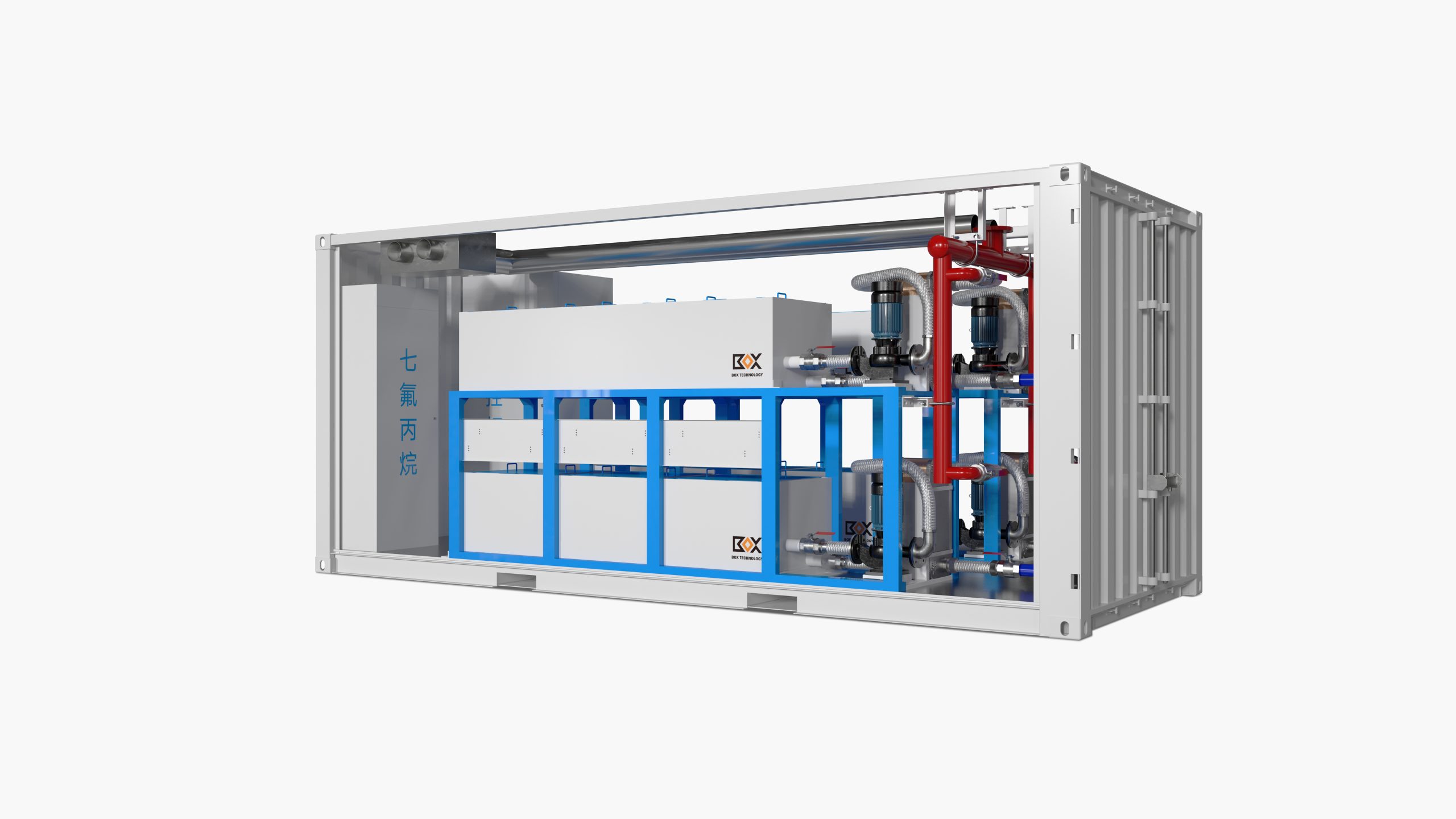 - 610KW immersion cooling container is composed of immersion cooling container body, shielded oil pump, brazing plate heat exchanger, The water cooling tower,etc.