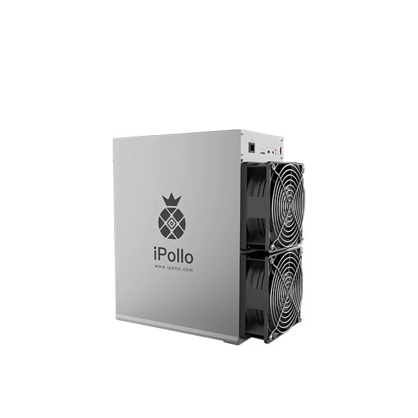 Model V1 Classic from iPollo mining EtHash algorithm with a maximum hashrate of 1.55Gh/s for a power consumption of 1240W.