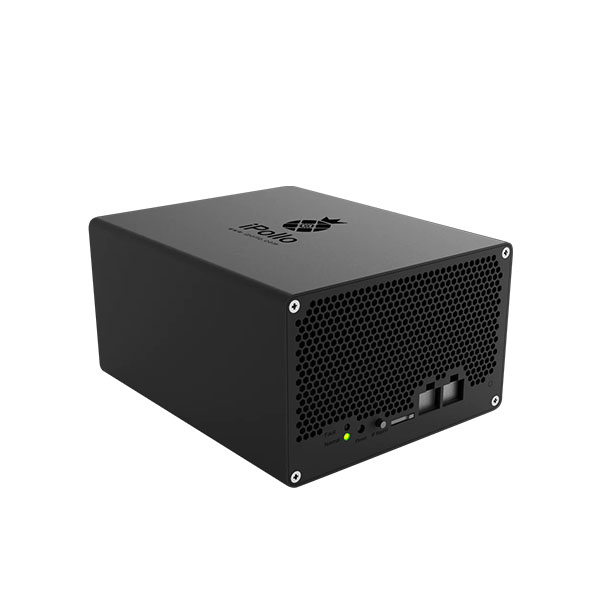 Model V1 Mini SE Plus from iPollo mining EtHash algorithm with a maximum hashrate of 400Mh/s for a power consumption of 232W.
