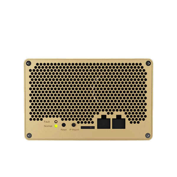 Model V1 Mini from iPollo mining EtHash algorithm with a maximum hashrate of 300Mh/s for a power consumption of 240W.