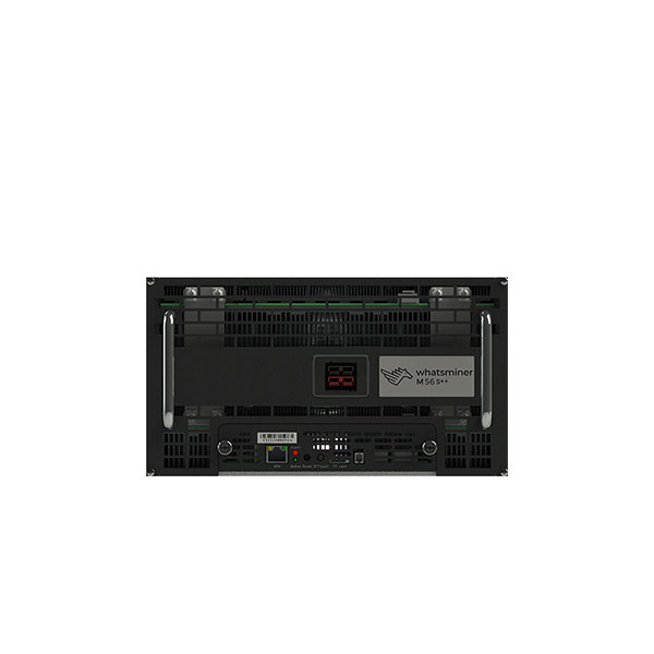 Model Whatsminer M56S++ from MicroBT mining SHA-256 algorithm with a maximum hashrate of 254Th/s for a power consumption of 5588W.