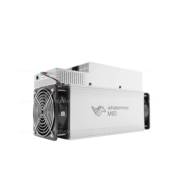 Model WhatsMiner M60 from MicroBT mining SHA-256 algorithm with a maximum hashrate of 172Th/s for a power consumption of 3422W.